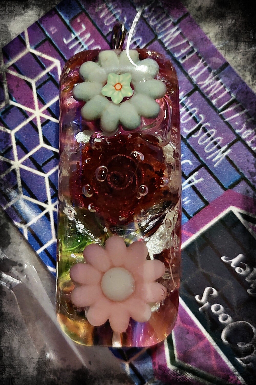 Rectangle Misc Flowers Custom Resin Pendant Necklace Charm.