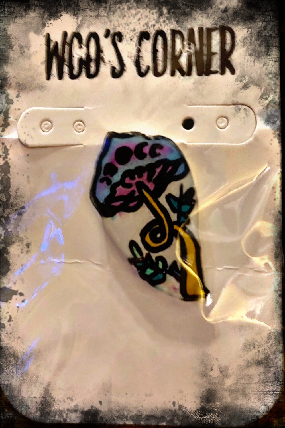Moon Phase Mushroom Custom Made Plastic Collector Pin.